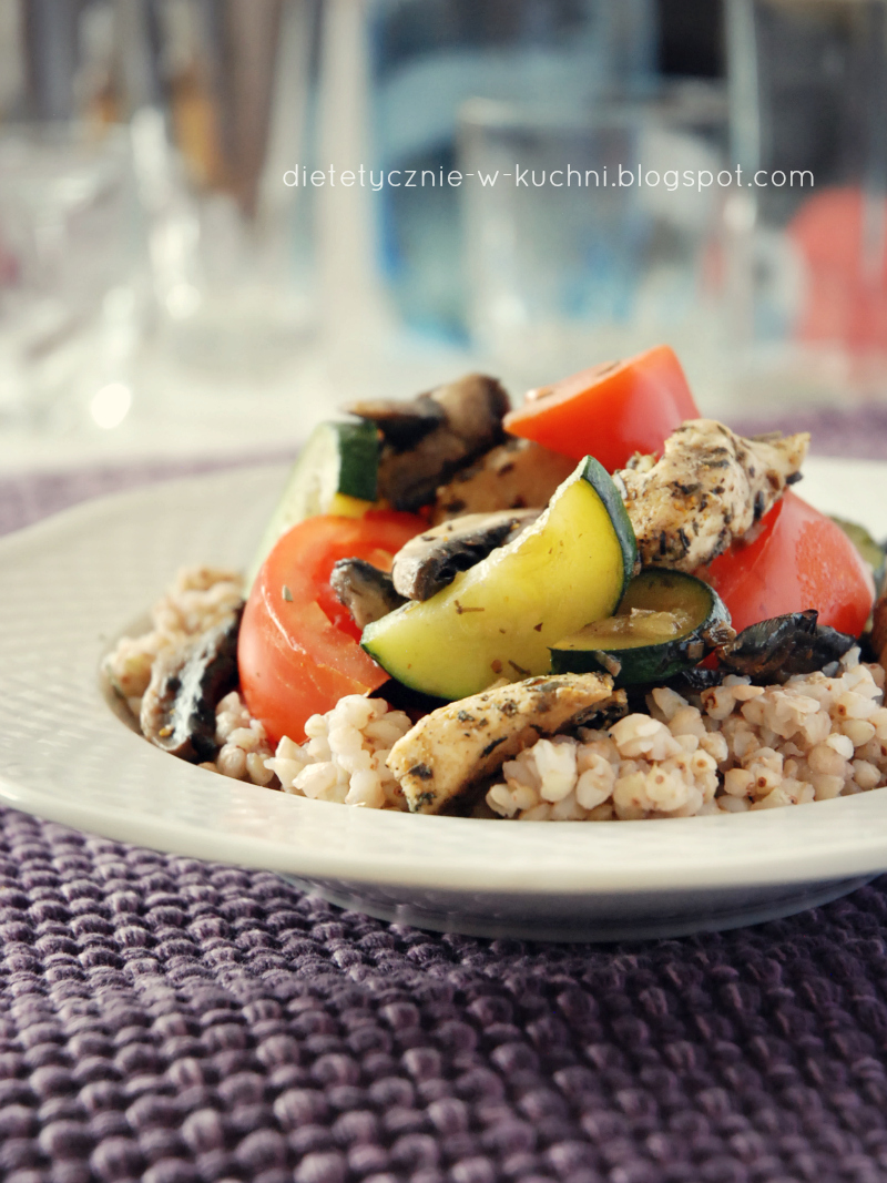 Kasza gryczana z kurczakiem, pieczarkami i cukinią